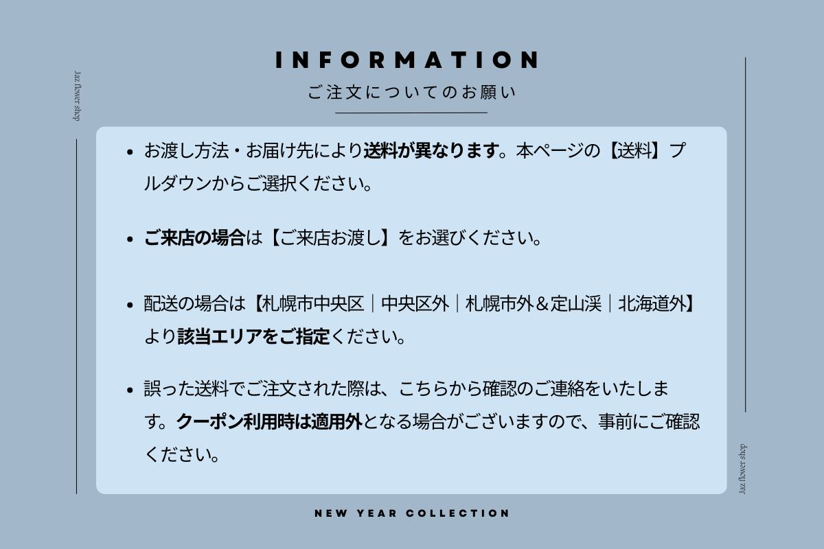 生花の蘭を使用しているため、凍結の心配がある地域への冬季配送は札幌市内限定となります。