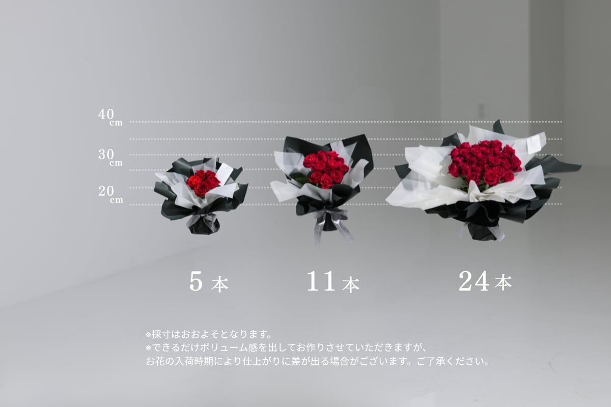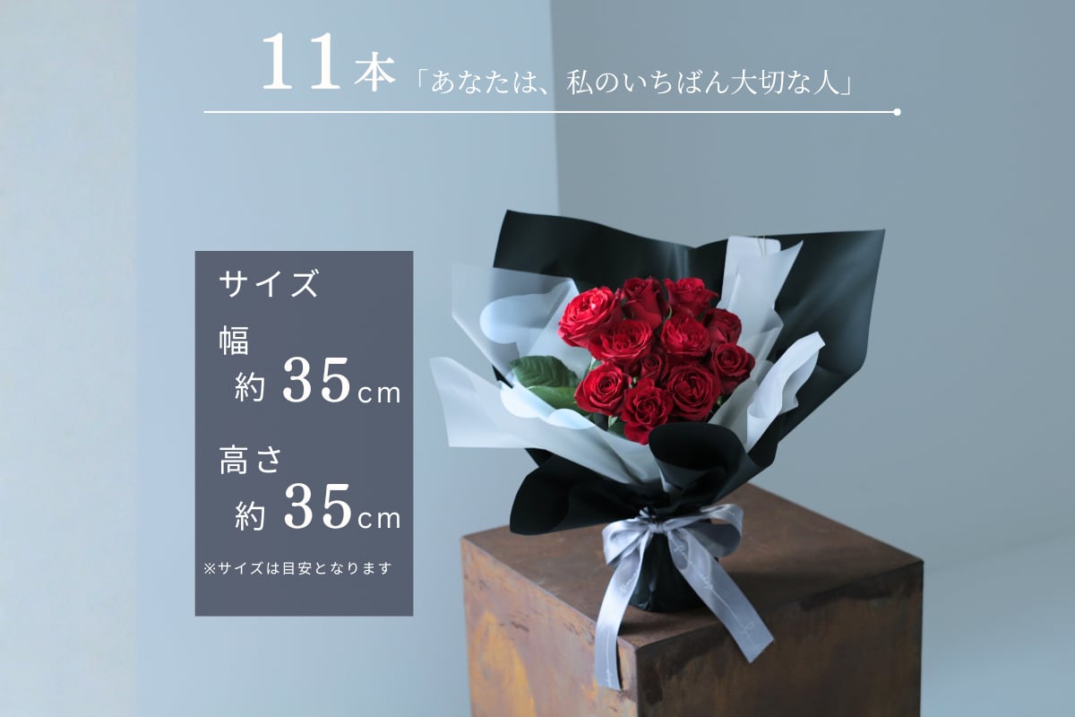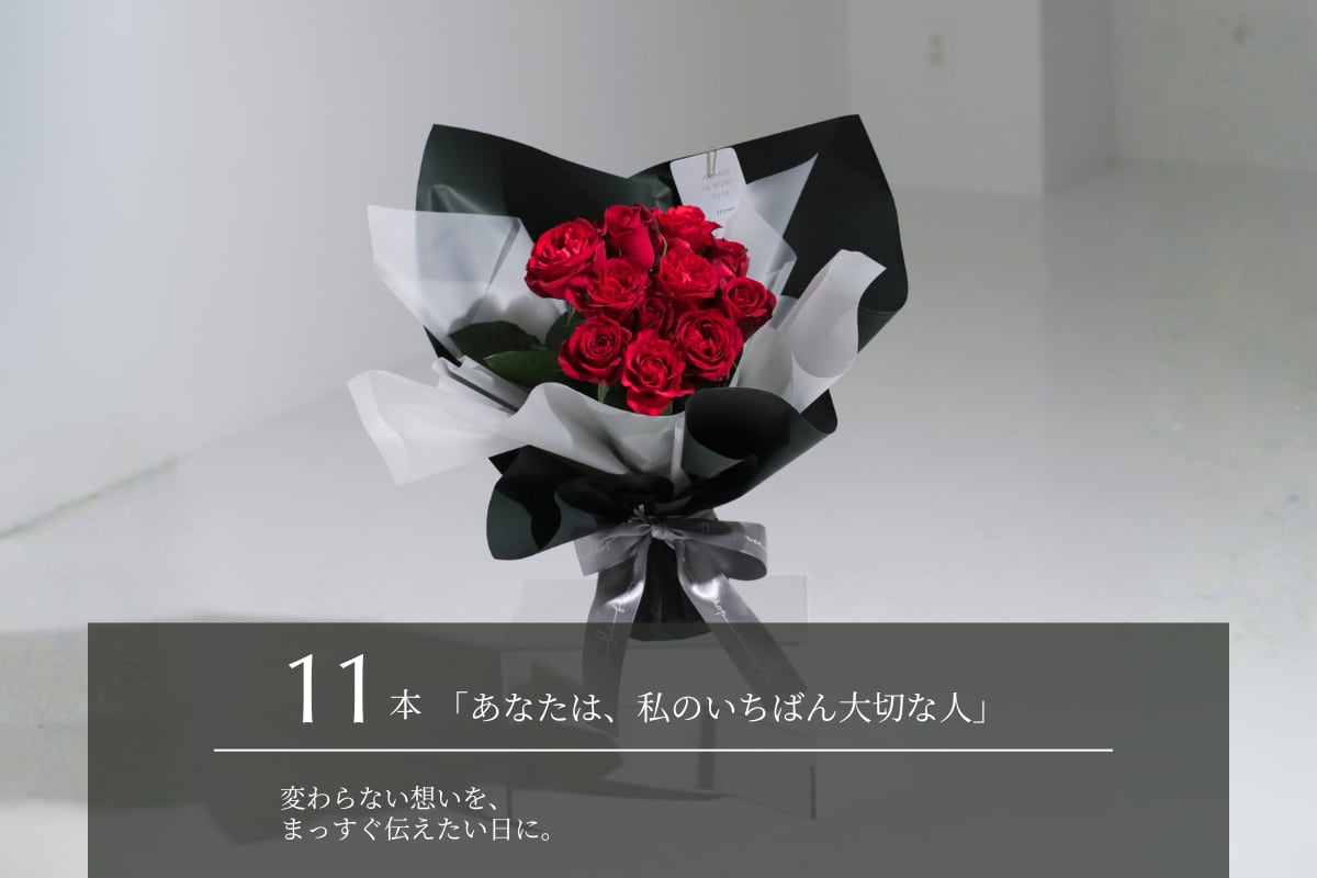 花の本数に想いを込めて贈る、赤バラの花束です。